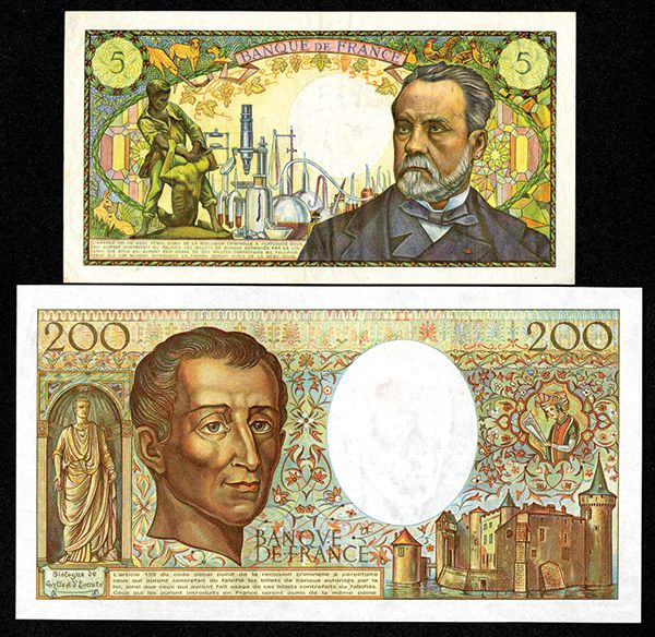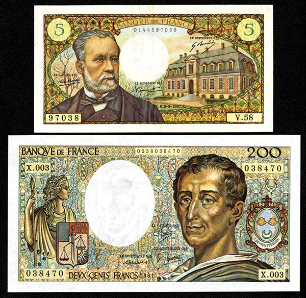 Banque de France, 1967 & 1981, Pair of Issued Banknotes France, lot of 2 issued notes, includes 5 Francs, 1967, P-146b, choice VF; and 200 Francs, 1981, P-155a, AU.