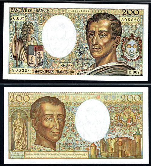 France, 1981, 200 Francs, P-155a, Issued banknote, S/N C.007 305350, Montesquieu at right, PMG graded Gem Uncirculated 66 EPQ.