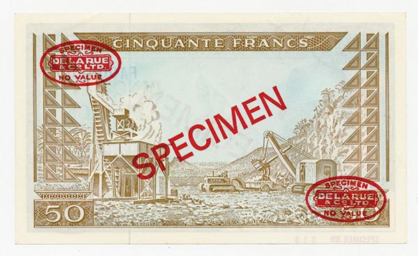 Guinea. 1960, 50 Francs, P-12s, Specimen Banknote, TDLR, Specimen No 013. Choice About Unc. (Hammurabi Collection of Serial #13 Notes)
