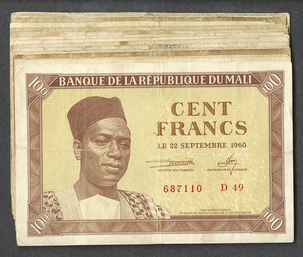 Mali. 100 Francs. P-2 (20). President Modibo Keita at left. Mostly Very Good to Fine, some with stains. 20 pieces.