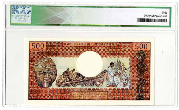 Central African Republic. Issued 500 Francs, ND (1974), P-1 BEAC B1a. ICG AU/UNC 60. FCOF.