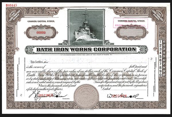 Bath, Maine, < than 100 Shares, specimen, Destroyer "366" racing through the ocean, the shipyard fabricated naval war vessels for the navy since it was founded in 1884 and currently is a division of General Dynamics, Historic company. ABNC.