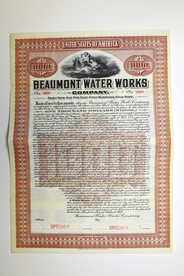 Texas. $1000 Gold Coupon Bond Specimen. ABNC. Extremely Fine.