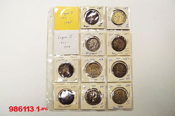 Belgium. Leopold I and II, 5 Francs (14); other large silvers (6). Minors (the rest). Many dates with both Flemish or French legend varieties. Mostly Very Good to Very Fine a bunch of the very modern issues better. Includes Liege (3). Total just over 210 pieces.