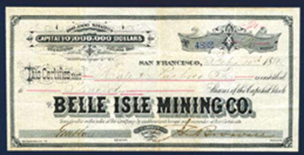 Nevada, 1880, I/U, #4832, 20 Shares, Black print with ornate border and underprint, No vignette, VF condition, Britton, Rey & Co. Lith. Location of mine is Tuscarora District, Elko County, Nevada.