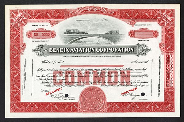 Indiana, ND (ca.1920-30's). <100 Shares, Red border. Zeppelin, airplane, limousine and truck vignette. Red specimen overprint and POC. Choice uncirculated condition. Northern BNC. Scarce aviation certificate.