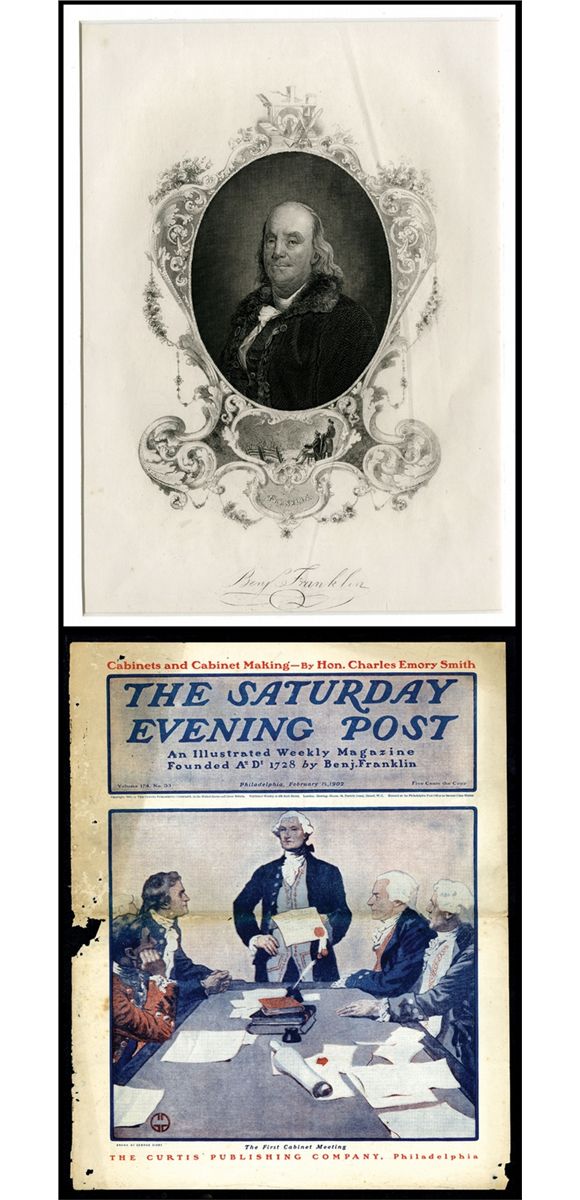 Attractive and in VF; Also includes 1902 front cover of the Saturday Evening Post in poor condition with water staining and missing left side borders.