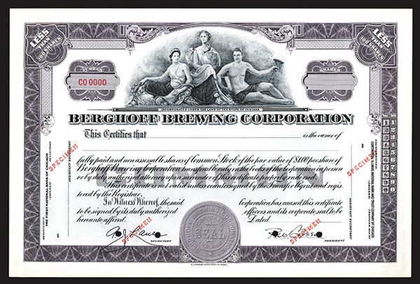 Indiana, <100 Shares, Specimen, Purple border and underprint, Allegorical men and women on top, POC's, XF condition. E.A. Wright BNC. Rare.