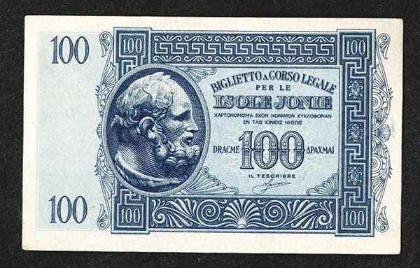 Greece - Ionian Islands. 100 Drachmae. P-M15. Strong watermark. Nice Choice About Uncirculated.