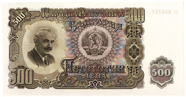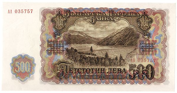 Bulgaria. Lot includes a 500 Leva banknote, with regular "issued" s/n AA 035757. P-87Aa. Choice to Gem Unc.