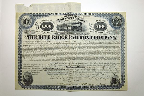 South Carolina. $1000 Coupon Bond. I/C. Large Format. Cut Cancels. Very Fine +.