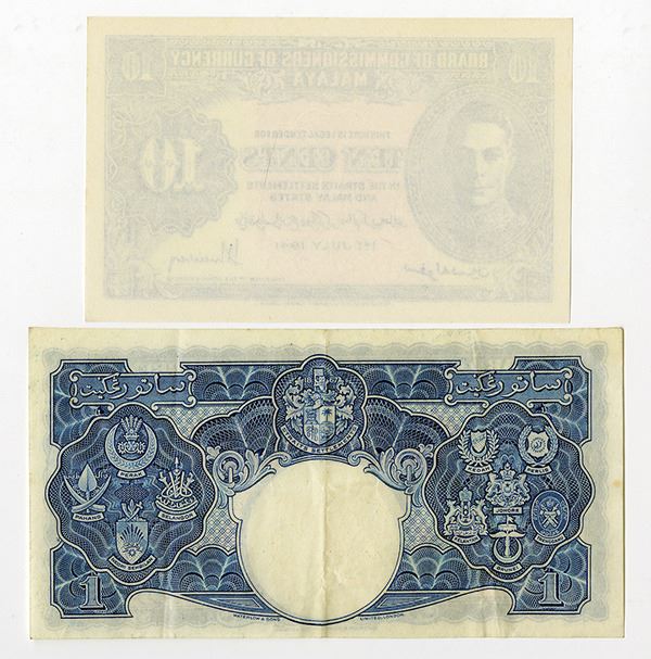 Malaya, lot includes 1 Dollar, 1941, P-11, Extra Fine, W and 10 Cents, 1941, P-8, uniface, Uncirculated, TDLR.