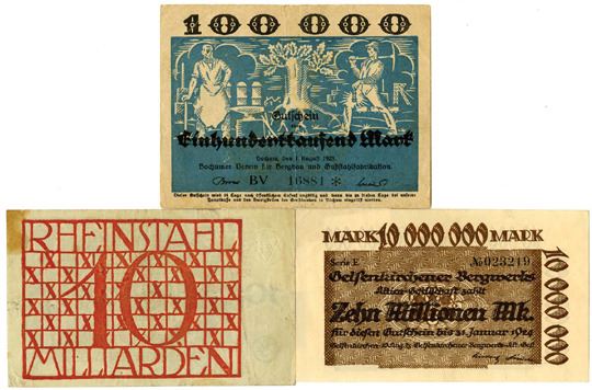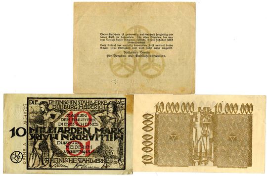Germany.... 1923-24. Lot of 4, includes 100,000 Mark and 10,000,000 Mark from Bochum and 10 Million Mark from Dusiberg-Meiderich. Notes range from Fine-VF condition. Sold as is, no returns accepted. (4).