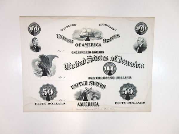 Washington, D.C., Lot of 3 counterfeit detector plates, Includes portraits of Lincoln, Hamilton, ships, eagle and different numeral counters, All removed from books long ago and in VF to XF condition. All printed on thin card board. BEP and ABN.