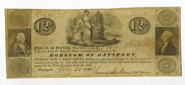 Gaysport, PA., 12 1/2 cents, H 134-2, Issued, Choice VG to almost Fine, Franklin at left, Washington at right and cherub in middle, rarely seen at auction.