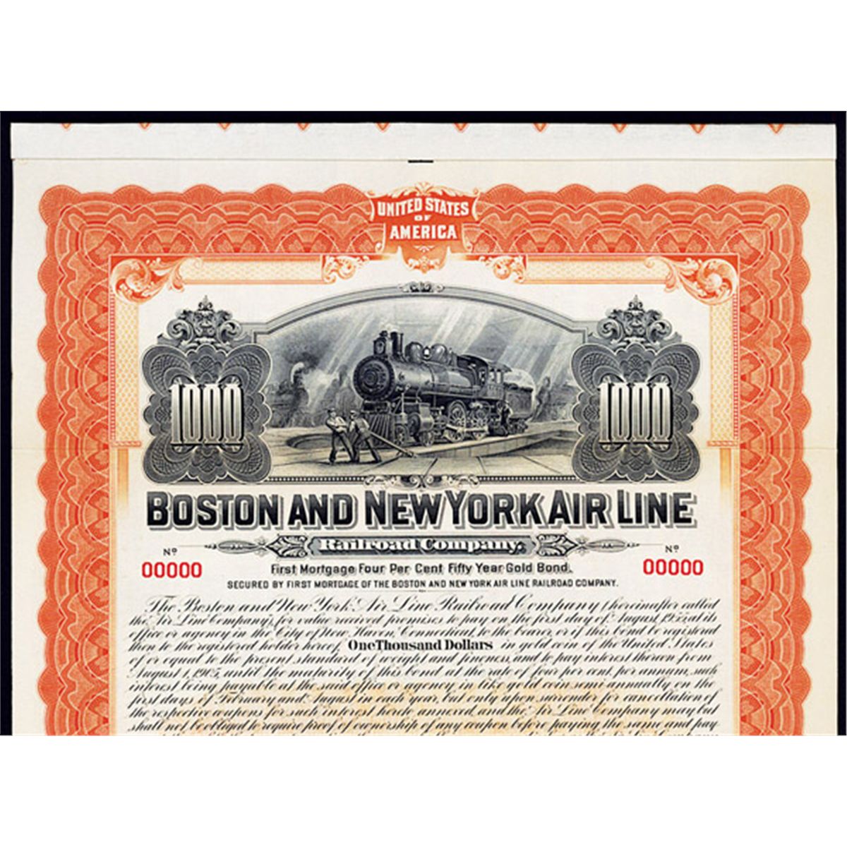 New York & Massachusetts, 1905, $1000, Specimen bond, Locomotive on turntable, Orange, ABNC, POC's, XF.