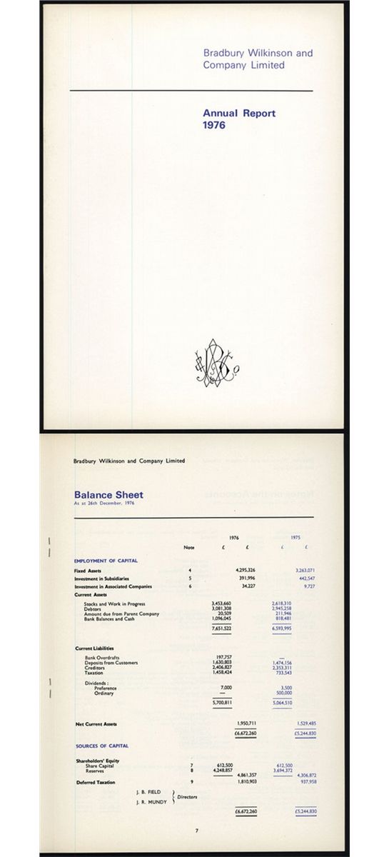 Britain, 1976, Bradbury Wilkinson and Co. Ltd. Annual Report, 12 pg. annual report in VF-XF condition.