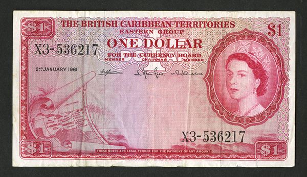 British Caribbean Territories. Eastern Group. 1 Dollar. P-7c. VF. Elizabeth II at right, map at left.