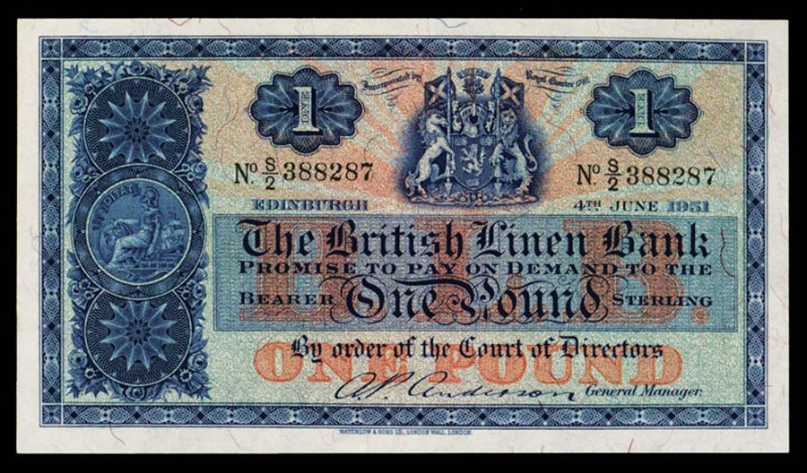 Edinburgh, Scotland, 4th June 1951, 1 Pound, P-157d, Issued banknote, PMG graded 58 Choice About Uncirculated EPQ (Exceptional Paper Quality), evidently a small issue that is impossible to detect is keeping this note from Choice Uncirculated condition. Exceptional grade for this issue. W&S.