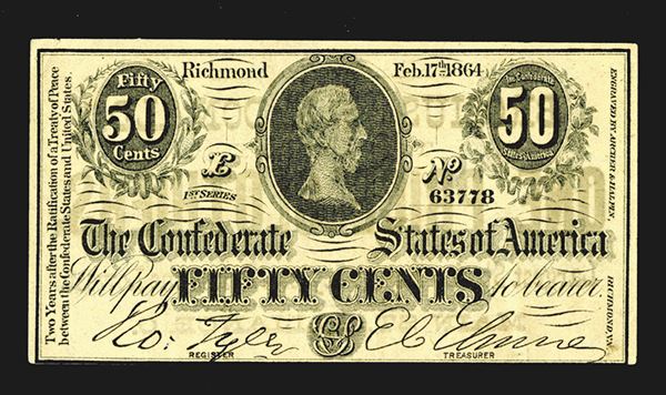 Ohio. Alliance. Brosius & McDonald Clothiers. On back of a reprint of 17.2.1864 50c note. VF to EF.