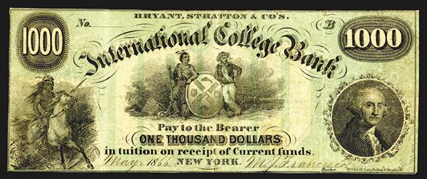 NY. NY City seal at top center, Indian on horseback at left, Washington at right. Fine+.