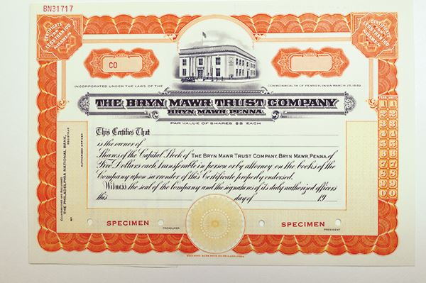 Pennsylvania. -Odd Shrs Stock Certificate Specimen. Security BNC. Extremely Fine.