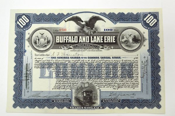 New York. 100 Shrs Stock Certificate. Blue border. I/U. ABNC. Very Fine +.
