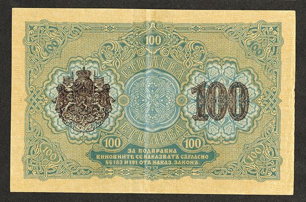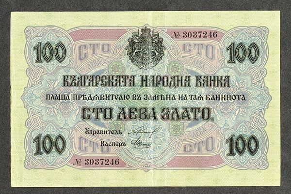 Bulgaria. 100 Leva Zlato. P-20a. Black on vivid underprint. Serial # without prefix letter. Choice VF to XF.
