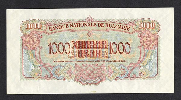 Bulgaria. 1000 Leva. P-72a. Arms at left, value at right. Choice Very Fine - XF.