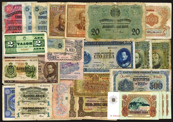Bulgaria. 2, 5, 10, 20, 50, 100, 500, 1000 Leva. WWI thru 1990. Quite the variety of notes with many types represented Fair to Very Good condition. Some with repairs, others with paper loss. 35 pieces.
