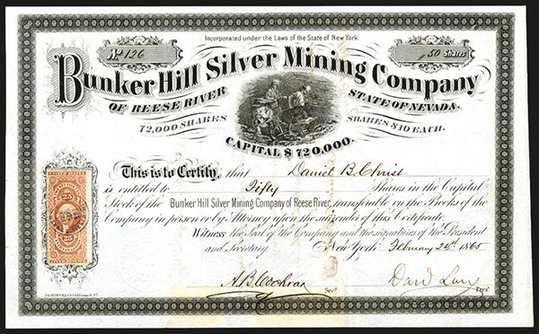New York, USA , 50 shares, I/U, mining scene, VF+ Revenue Stamps,