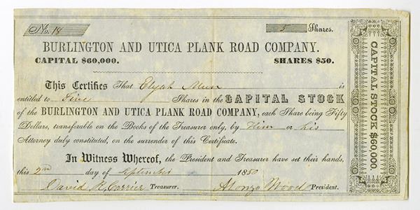 New York. 5 Shares Capital Stock Issued Stock Certificate, Black print on black border in small sized format, Company title at top, Fine-VF condition.