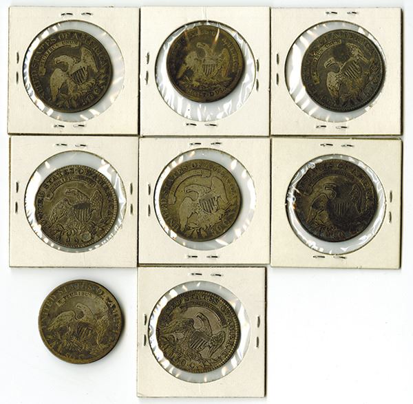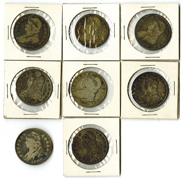 1809 Good details, digs on the obverse; VG, some discoloration and Fine, but stained; 1923 Fine, some dark areas on the reverse; 1928 Good and About Fine, both somewhat discolored. 1830 Good; 1830 Fine; 1830 VF details, holed, plugged 1839 Good, some discoloration. [8] Please inspect, sold "As is" No returns accepted.