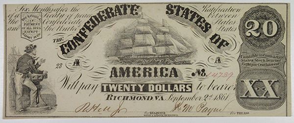 Richmond, VA. Issued 20 Dollars, dated September 2nd 1861, P-31a, About Unc. H&LRVA.