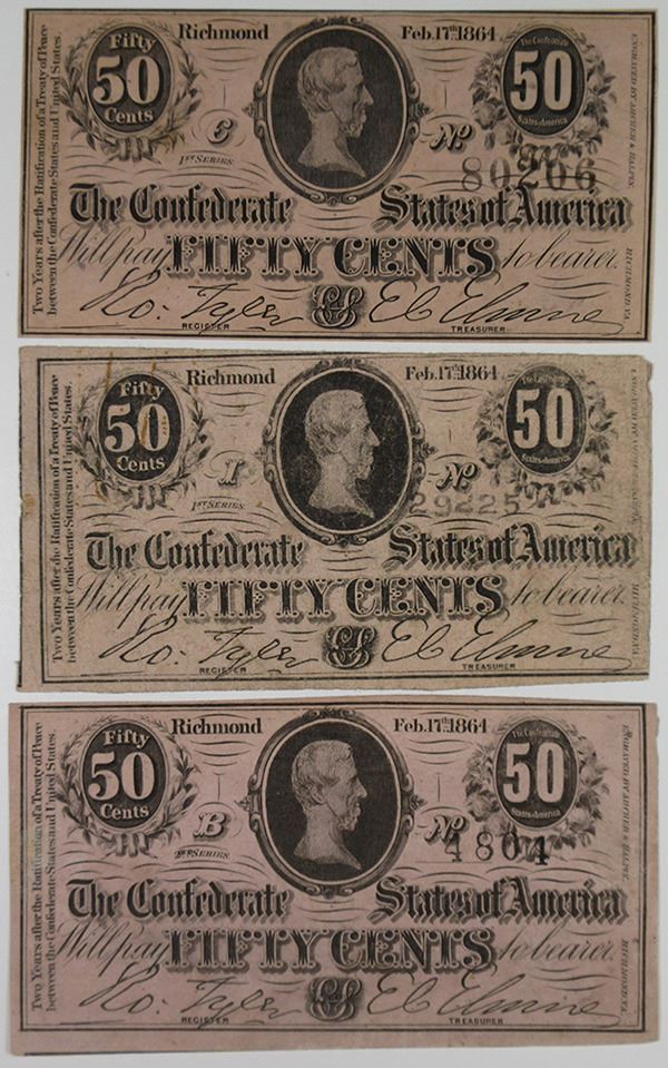 Richmond, VA. Lot of 3 notes, all 50 Cents, dated February 17th 1862, P-64a, two About Unc and one VG.