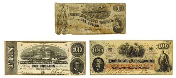 Includes 100 Dollars, 1862, P-45, Choice Fine; 10 Dollars, 1863, P-60, Uncirculated; and 1 Dollar, 1863, P-39, Very Good. Unissued remainder, 18__, PCGS graded Choice About New 58 PPQ; and 20 Dollars, unissued remainder, 18__, RCGS graded Crisp Choice Uncirculated 62.