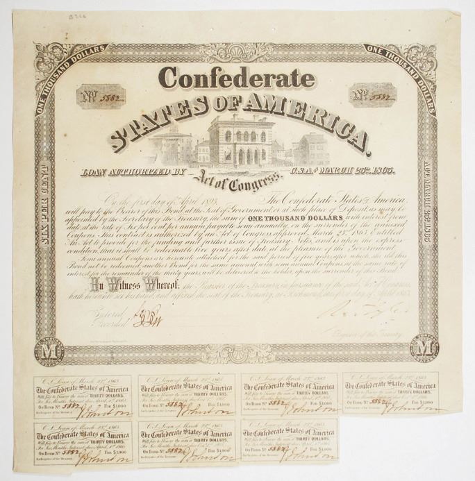 C.S.A., 1863, Act of March 23rd, 1863, $1000, I/U (Unlisted Signature Variety, T142-B266, Cr.130A) I