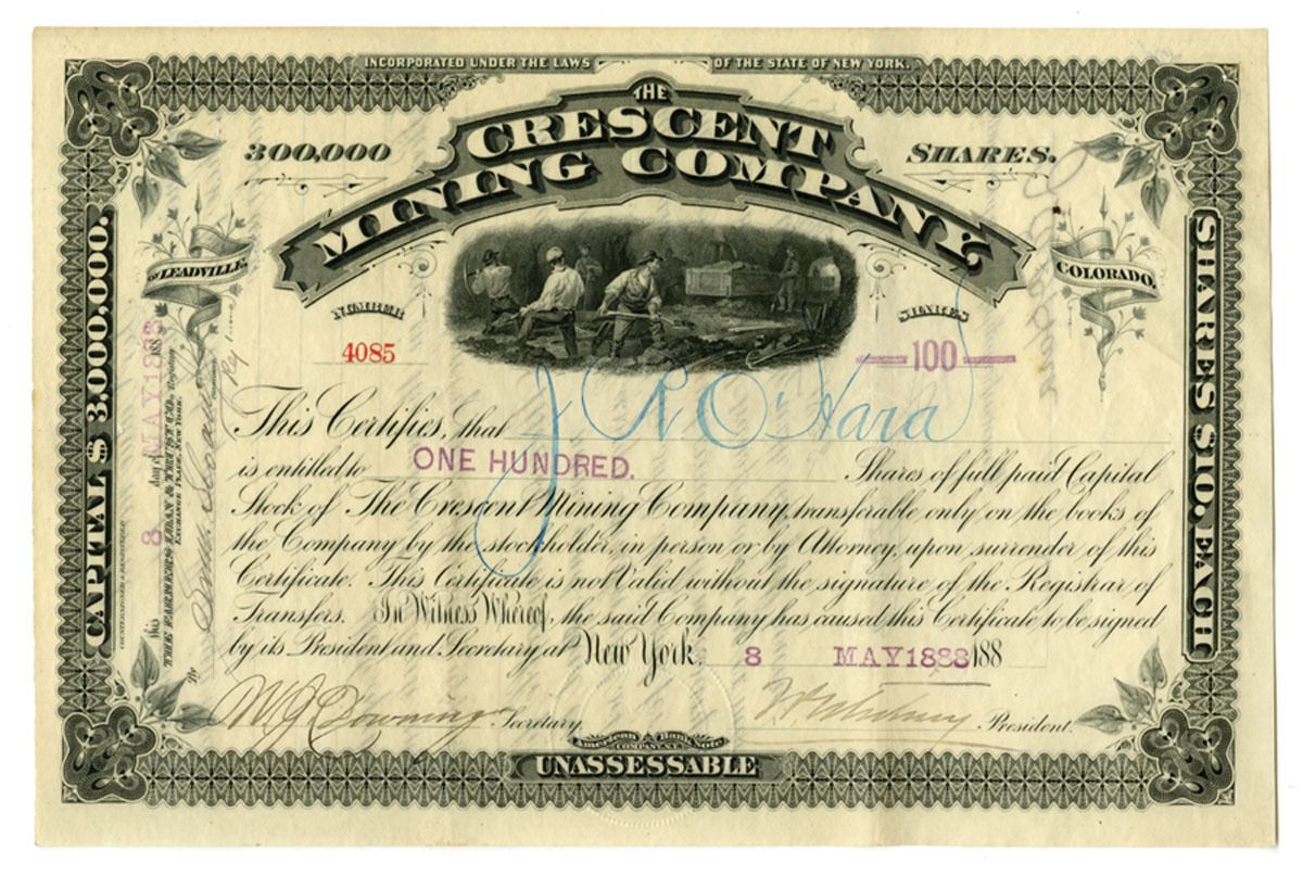 Leadville, Colorado (Inc. in New York), 1888. 100 Shares Capital Stock I/U Certificate, Black print with black border, Mining vignette at top center under company title, Mine located in Leadville, Colorado, S/N 4085, XF to AU condition. ABNC.