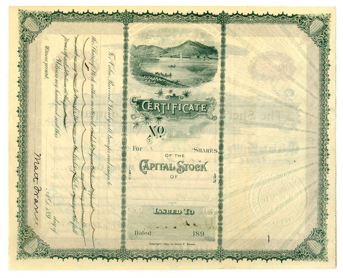 Colorado, Springs, Colorado, 1896. 1000 Shares Capital Stock I/C Certificate, Black print with brown border and underprint, Company title at top center with bald eagle perched on top, S/N 32, Cancelled stamps at bottom, VF to XF condition.
