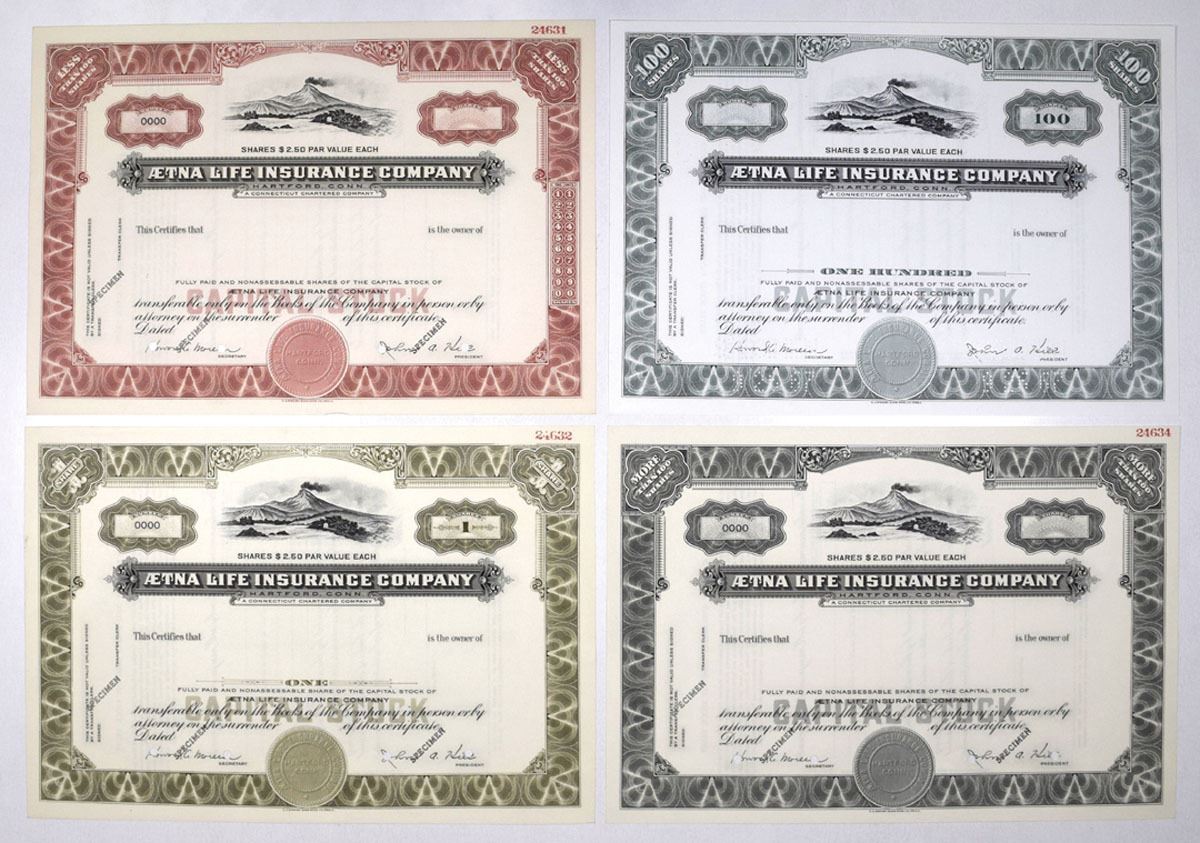 Connecticut, 1967. Lot of 4 Specimen Stock Certificates for varying share amounts and colors, All are marked Specimen with either overprints and POCs or Pin punches and are in AU to UNC condition. E.A Wright BNC. (4). Sold "AS IS" no returns accepted.