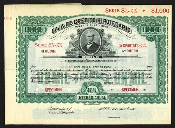 Chile. 1000 Pesos Coupon Bond Specimen. ABNC. POCs. VF+