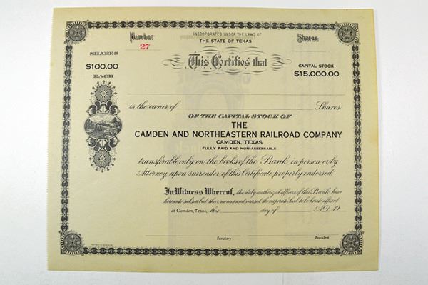 Texas. -Odd Shrs Stock Certificate. Unissued, uncancelled. VF+