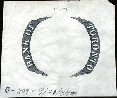 1935-37. 9 different proof vignettes printed in black or green on india paper or india paper mounted to manila file cards. All are LDP's or cut down LDP's in VG to XF condition. Vignettes from P-686 include Arms of Canada and woman and child from face of banknote and possibly corn stalks and maple leafs from back; Locomotive No.13 from P-S688 and S693, $20 banknotes; title proof similar to P-691 title with engraving on plate requesting removal of ornate flourishes, the back title that surrounds portrait of the king and queen and the denomination text "Will Pay to the Bearer...". Rare proof vignettes. I. ABNC, Canadian BNC