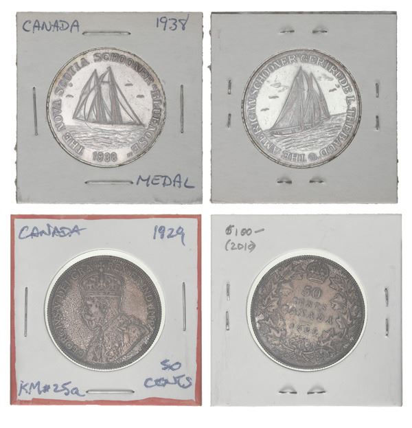 56 coins, including 1842 Quebec Bank Token; 1859 and 1913 large cents; 1930s silver and copper medals, 1960s private commemorative medals; 1960 and 1968 mint or proof sets and numerous 1964-67 Commemorative private medals. Attractive group that deserves careful inspection (56). Shipping charges apply - weight 5 lbs. (photo on web site)