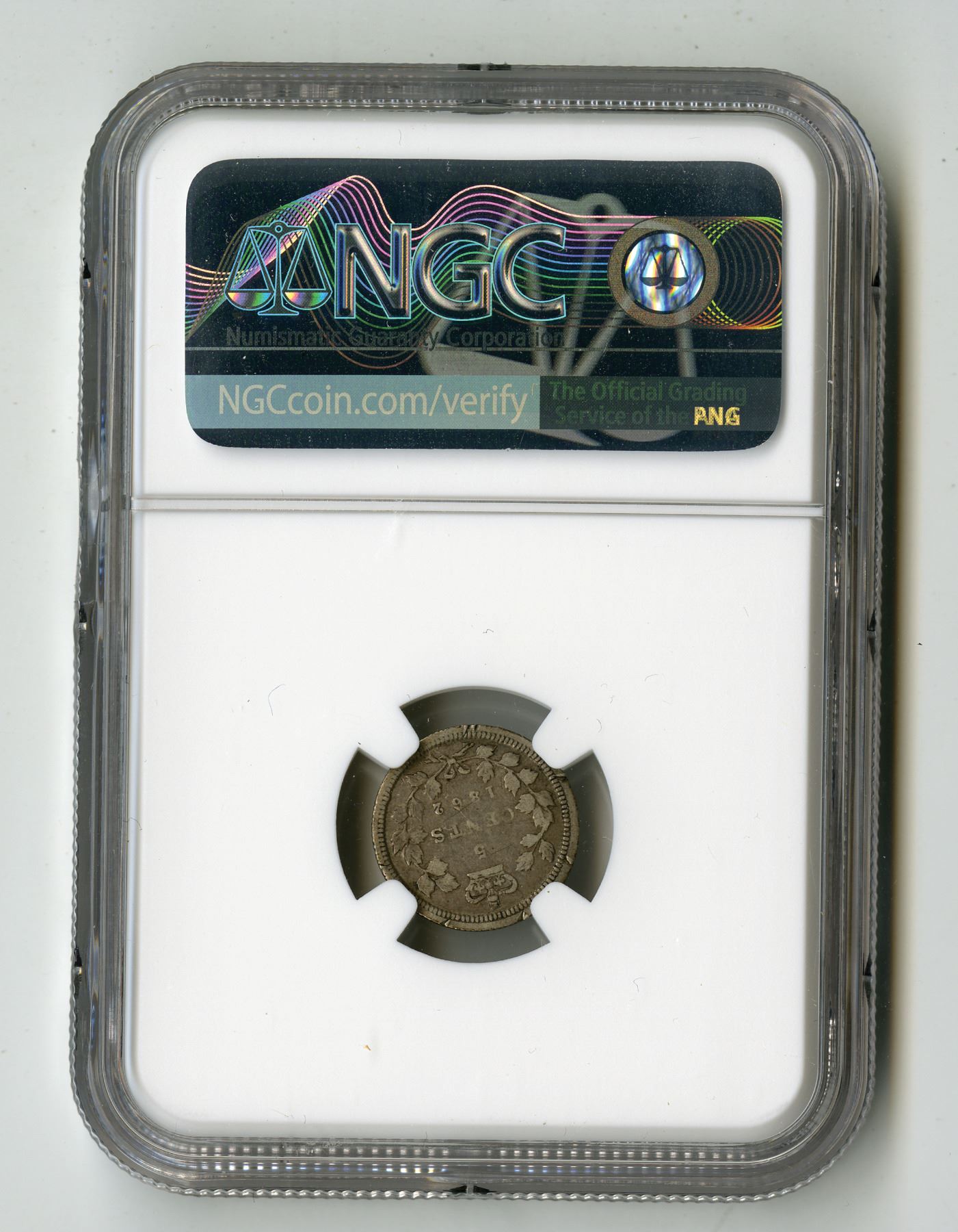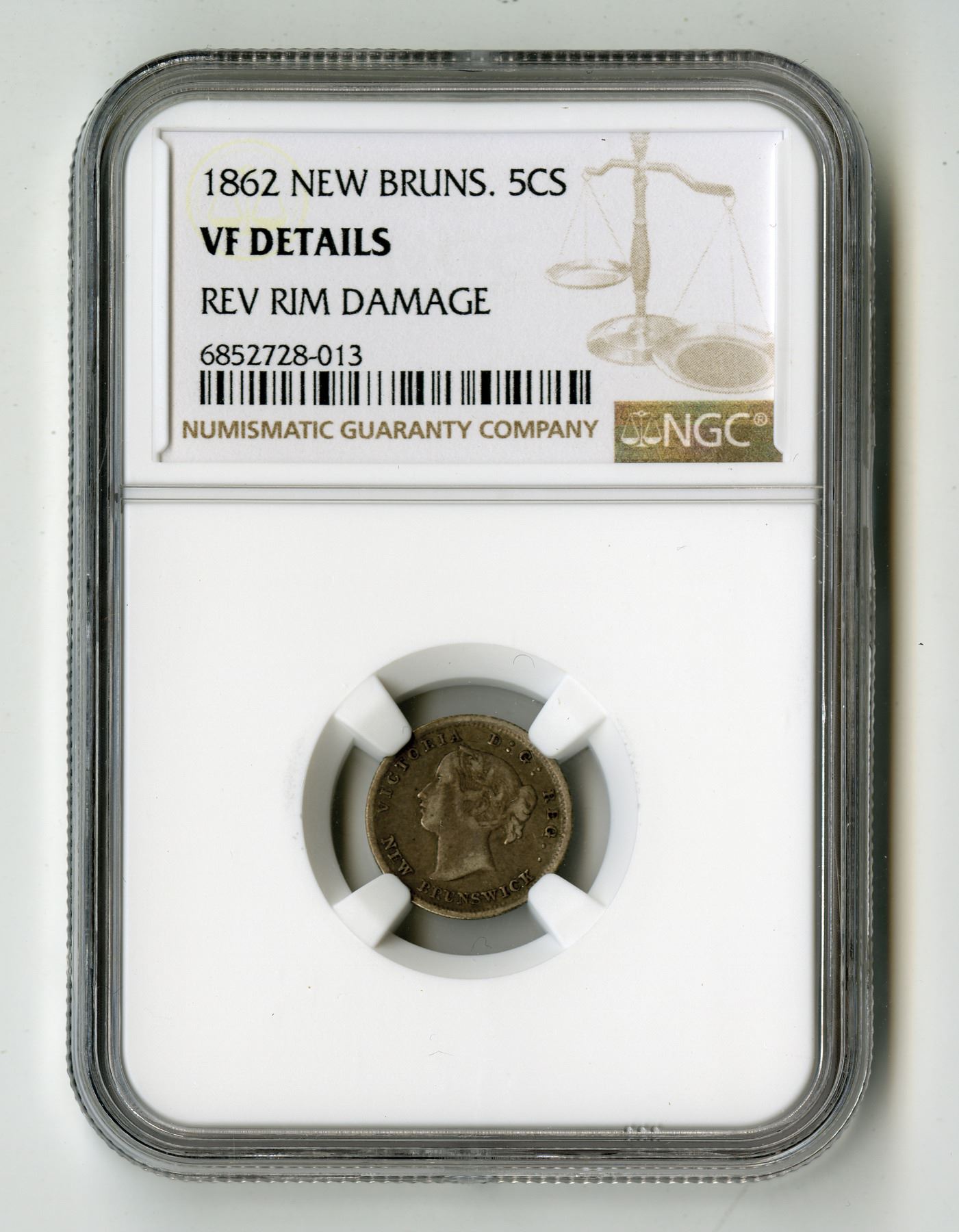 Canada: New Brunswick. 5 Cents, 1862; KM-7, silver, Royal Mint. NGC VF Details with comment "Reverse Rim Damage". Queen Victoria.