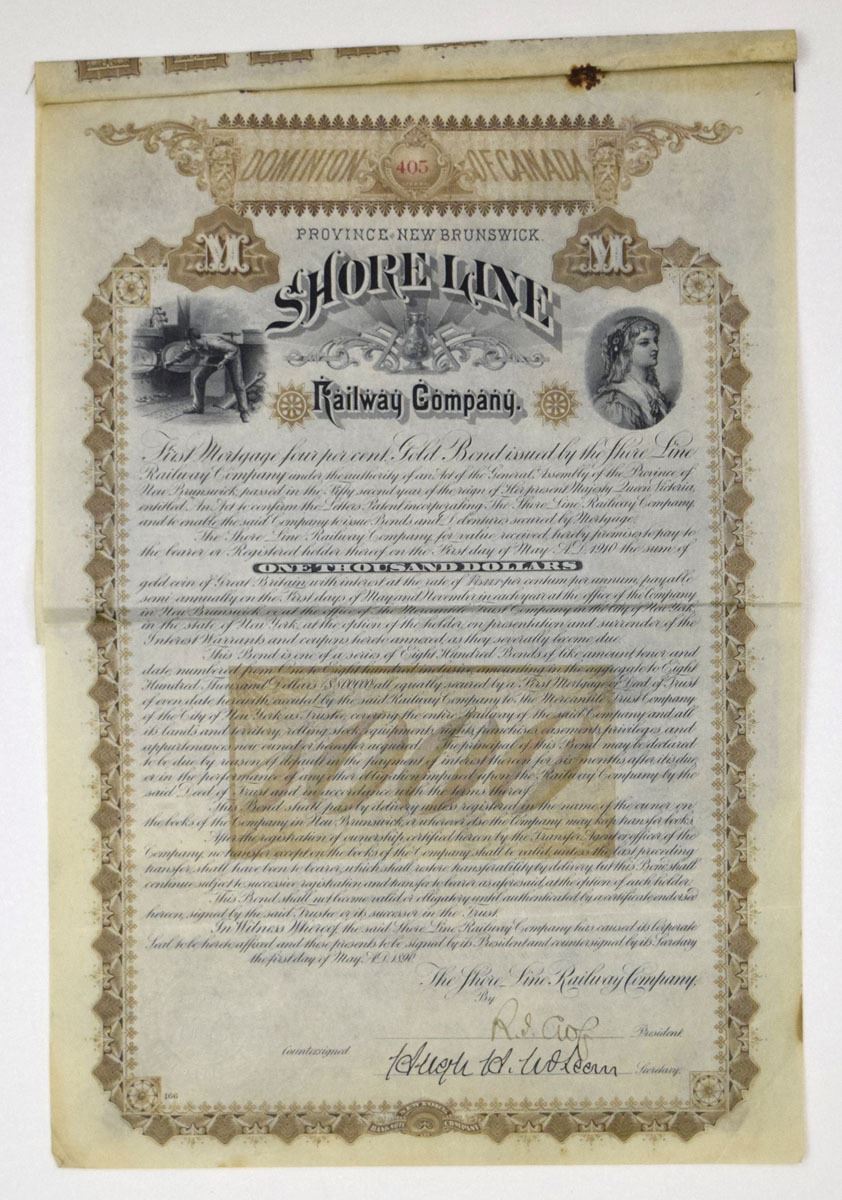 Dominion of Canada, 1890. $1000 First Mortgage 4% Coupon Bond, Black print with brown border, Worker vignette on the left and woman vignette on the right, Condition ranges VF to XF.