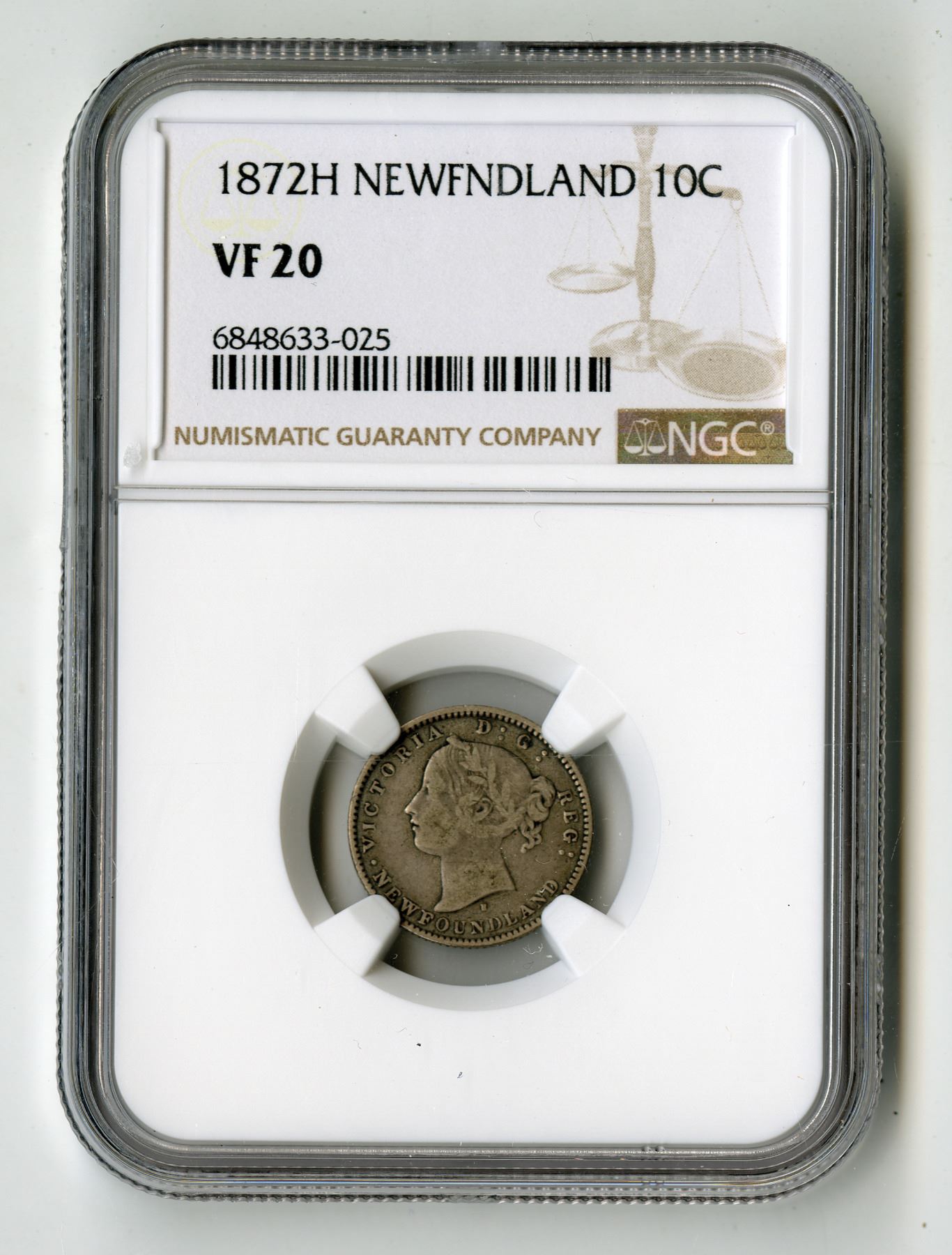 Canada: Newfoundland. 10 Cents, 1865; KM-3, silver, Heaton Mint. NGC VF 20. Queen Victoria. Problem-free example that is much less circulated than average.