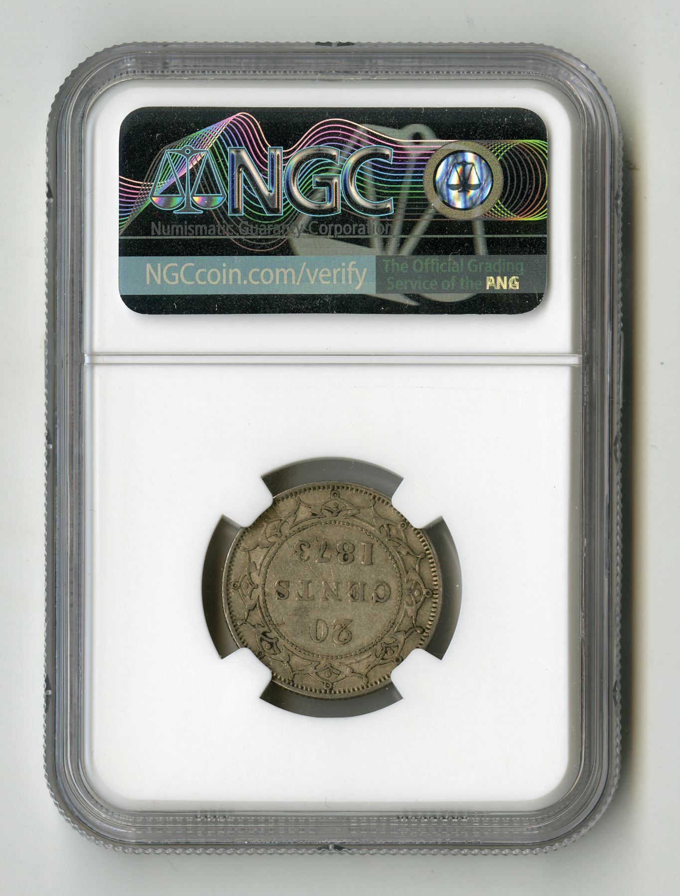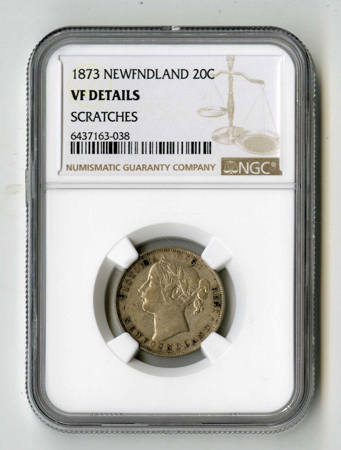 Canada: Newfoundland. Queen Victoria 20 Cents. 1873, KM-4, NGC Graded VF Details with comment "scratches".