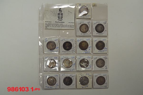 Canada - Newfoundland. 50c (23); 25c (2); 20c (16); 10c (24); 5c (17), Coppers (24); Prince Edward Island (6 including tokens); Nova Scotia (7); New Brunswick (7); Bank tokens (27 including some trade tokens). Generally Good to Very Fine. Just over 150 pieces.