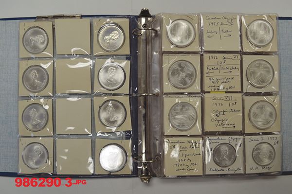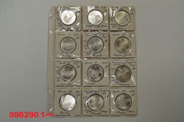 Canada. Olympic Silver 5 and 10 Dollars (14 of each). Uncirculated. Town trade dollars make up the remainder. Just over 75 pieces.